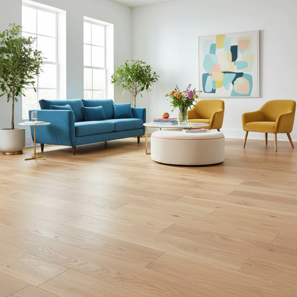 - Care este diferența față de parchetele cu mai multe lamele și de ce să aleg o singură lamelă? Parchetul cu o singură lamelă oferă un aspect mai uniform și elegant, eliminând liniile de separare multiple care pot fragmenta vizual spațiul. Această opțiune creează o continuitate vizuală superioară și evidențiază mai bine venele naturale ale stejarului, fiind preferată pentru livinguri mari și dormitoare principale.
