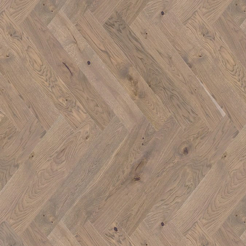 Textura periatoare evidențiază venele naturale ale stejarului, creând un contrast plăcut care aduce căldură și autenticitate în orice cameră. Microcantul pe toate laturile conferă o distincție deosebită fiecărei lamele, subliniind geometria complexă a modelului herringbone și creând un efect vizual captivant.
