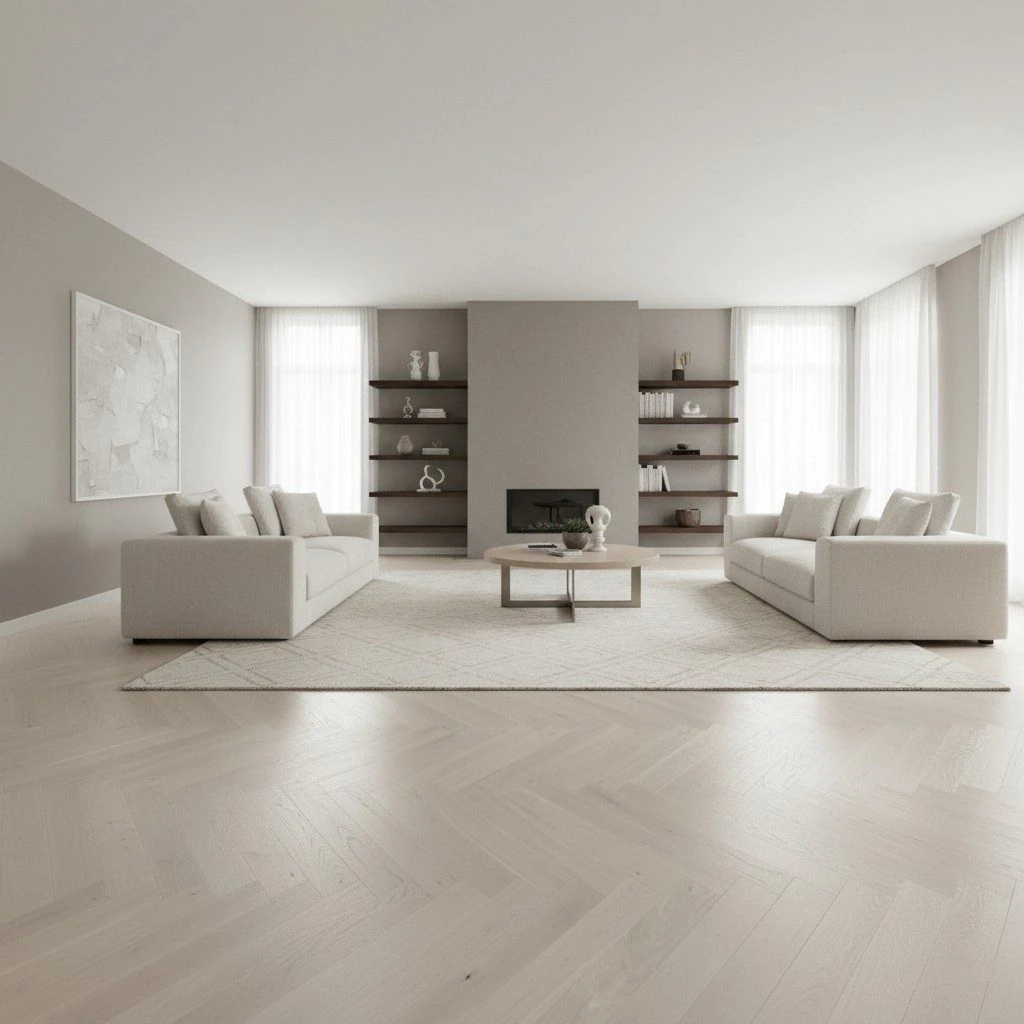 De ce să alegi parchetul triplustratificat crem din stejar Trivor Herringbone?