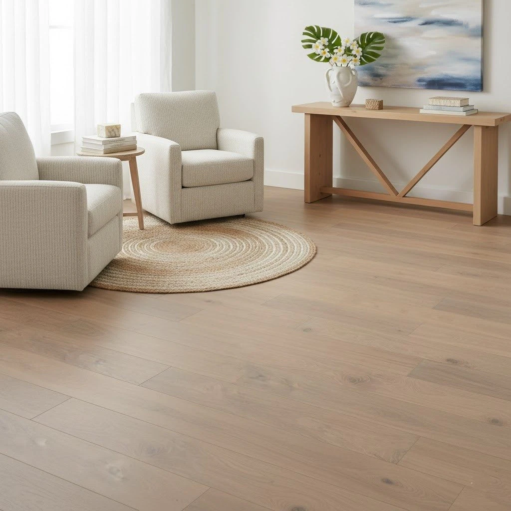 Etichete: parchet stejar natural bej, pardoseală triplustratificată rezistentă, montaj fără adeziv Barclick, compatibil încălzire în pardoseală, finisaj lac mat durabil, amenajări interioare moderne