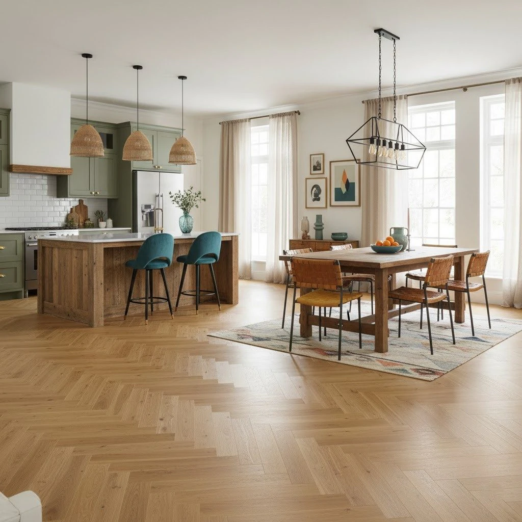 Multe persoane apreciaza parchetul in model Herringbone pentru ca aduce un element arhitectural distinct si elegant in spatiu. Este o alegere populara atat in proiecte rezidentiale cat si in spatii comerciale, unde se doreste crearea unei atmosfere sofisticate si primitoare.