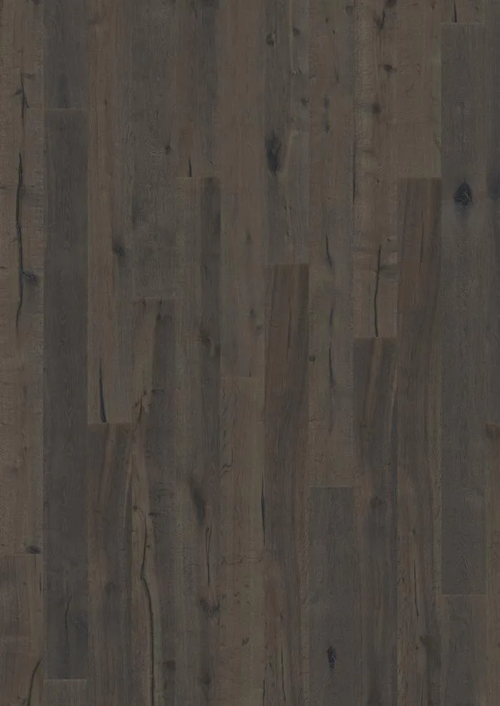 Parchetul triplustratificat Kahrs Founders Ulf stejar uleiat aduce căldura lemnului natural în locuința ta prin textura profund periată și nuanța gri închis.