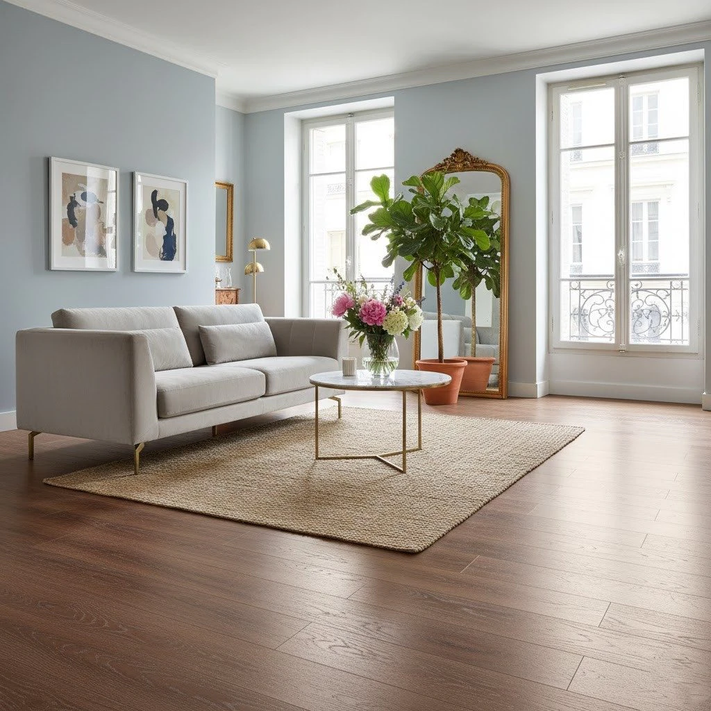 Spre deosebire de parchetul laminat obișnuit, acest vinil click de 6 mm oferă o senzație caldă și o izolație fonică de până la 19 dB, datorită substratului IXPE deja integrat. Acest design elimină nevoia unui substrat suplimentar, simplificând montajul și răspunzând tendințelor actuale de eficiență în renovări.