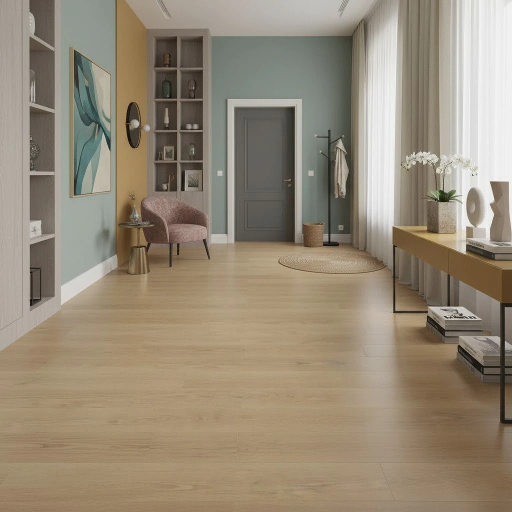 Deși pardoseala SPC are o rezistență bună la umiditate, nu lăsa apa să stagneze pe suprafața ei pentru perioade lungi de timp. Șterge imediat lichidele vărsate pentru a prelungi durata de viață a pardoselii și a menține aspectul său estetic.