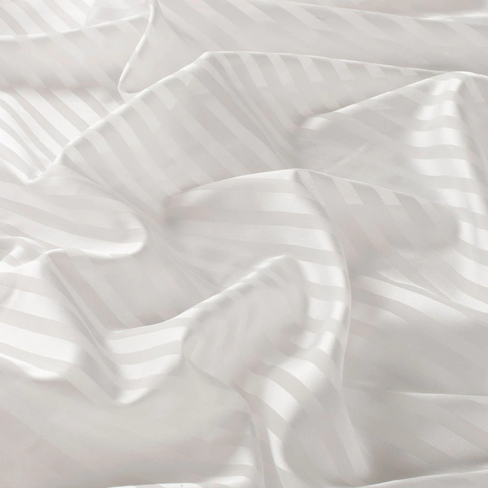 Material pentru perdele cu model in dungi alb argintiu din poliester voal Beta Gardisette latime 300 cm