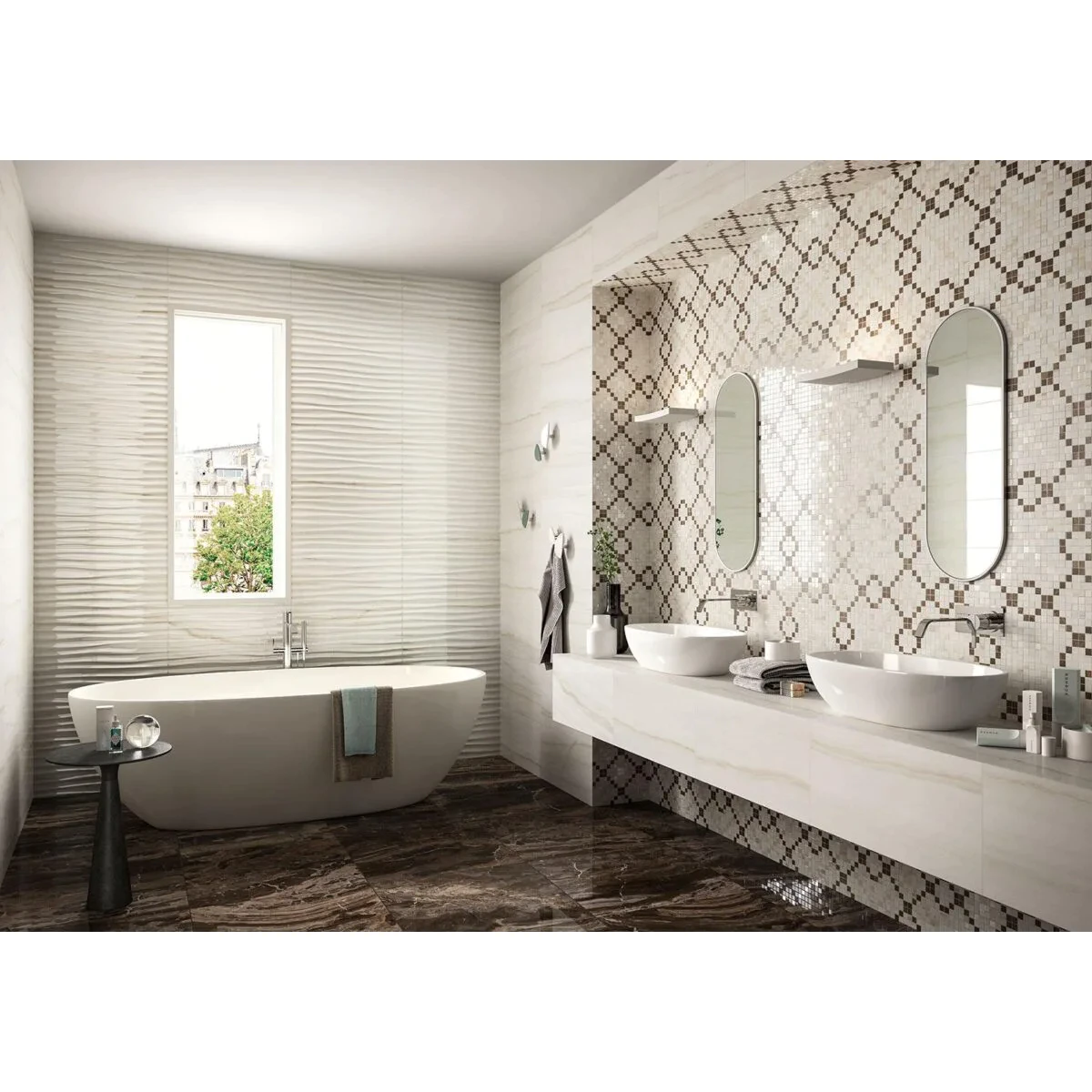 Această gresie marmură frappucino lux rectificată din colecția Allmarble de la Marazzi recreează cu fidelitate extraordinară textura și aspectul natural al marmuri de prestigiu. Nuanța frappucino aduce în spațiul tău căldura unei game cromatice rafinate, cu tonuri de bej și maro deschis care evocă eleganța clasică a pietrelor naturale de valoare. Tehnologia de rectificare asigură muchii perfecte și îmbinări impecabile, transformând orice suprafață într-un ansamblu continuu și rafinat.