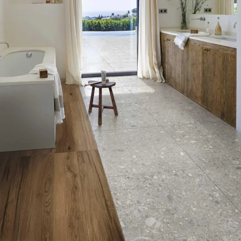 Lemnul de stejar este sursa de inspiratie pentru aceasta noua colectie. Treverklife reproduce frumusetea “briccolelor”, stalpii de marcaj pentru nave folosite in laguna venetiana, care constau in stalpi masivi de stejar infipti in fundul marii. Colectia, in 3 culori calde – Miere, Cires si Nuc – si doua dimensiuni, 25×150 cm si 20×120 cm, include, de asemenea, un decor “Industrial” si un mozaic din placi de gresie cu aschii hexagonale (“esagonette”), ambele pentru utilizare cu toate variantele de culoare.