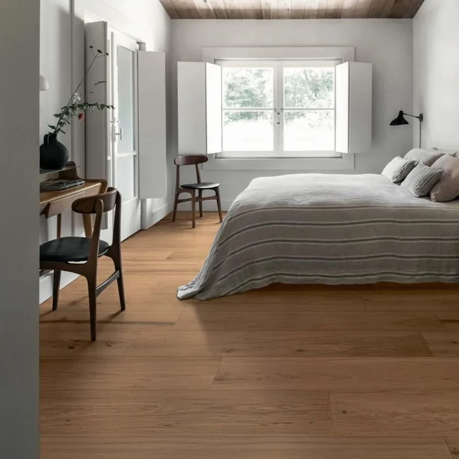 Lemnul de stejar este sursa de inspiratie pentru aceasta noua colectie. Treverklife reproduce frumusetea “briccolelor”, stalpii de marcaj pentru nave folosite in laguna venetiana, care constau in stalpi masivi de stejar infipti in fundul marii. Colectia, in 3 culori calde – Miere, Cires si Nuc – si doua dimensiuni, 25×150 cm si 20×120 cm, include, de asemenea, un decor “Industrial” si un mozaic din placi de gresie cu aschii hexagonale (“esagonette”), ambele pentru utilizare cu toate variantele de culoare.