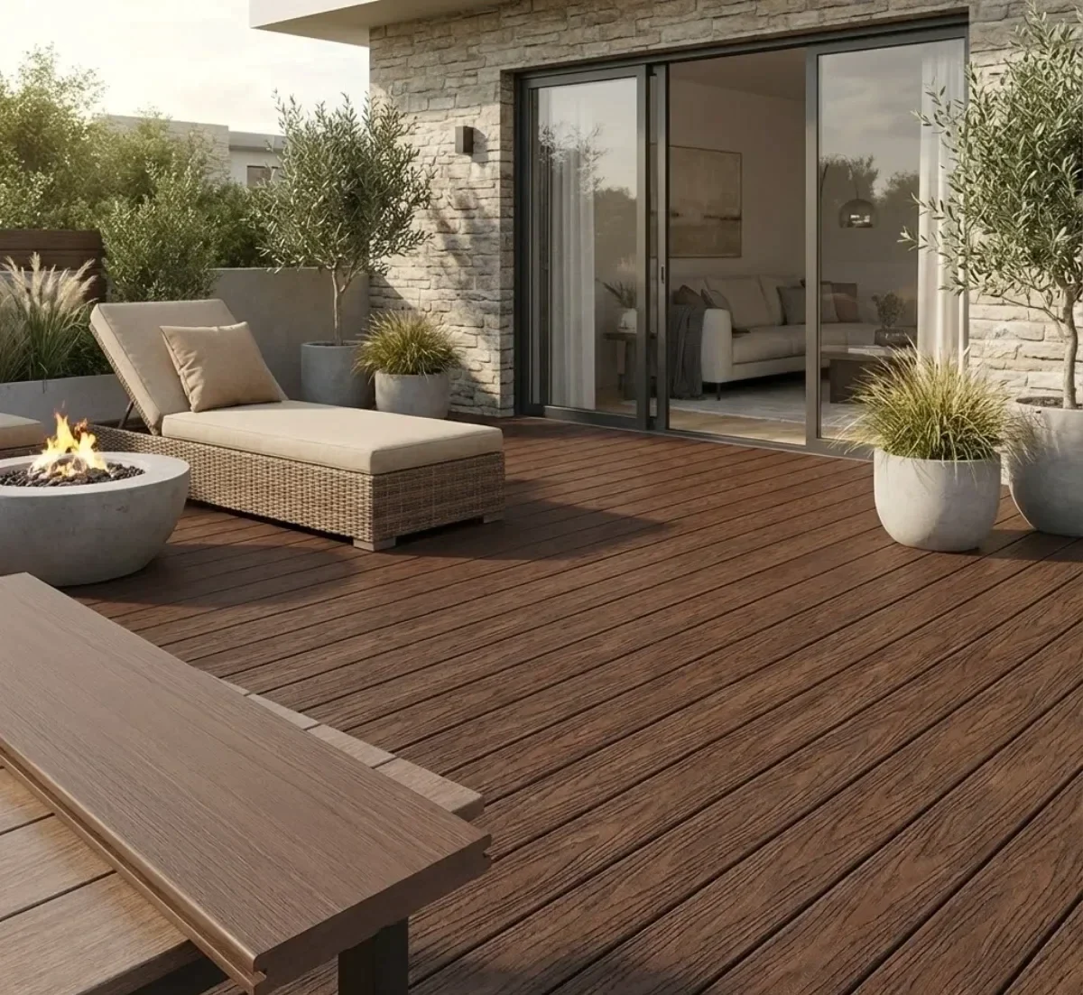 Recomandăm placa deck coextrudată pentru terase rezidențiale și comerciale unde se dorește un aspect natural combinat cu rezistență pe termen lung.