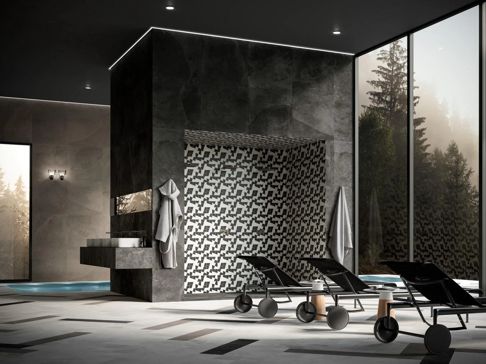 Tradiția nord-africană întâlnește ceramica industrială. Plăcile cu aspect artizanal din seria Zellige sunt produse în 12 nuanțe cu finisaj lucios și variații vizibile ale tonurilor. Instalarea aleatorie creează un efect de amestec, în care culorile vibrează puternic.