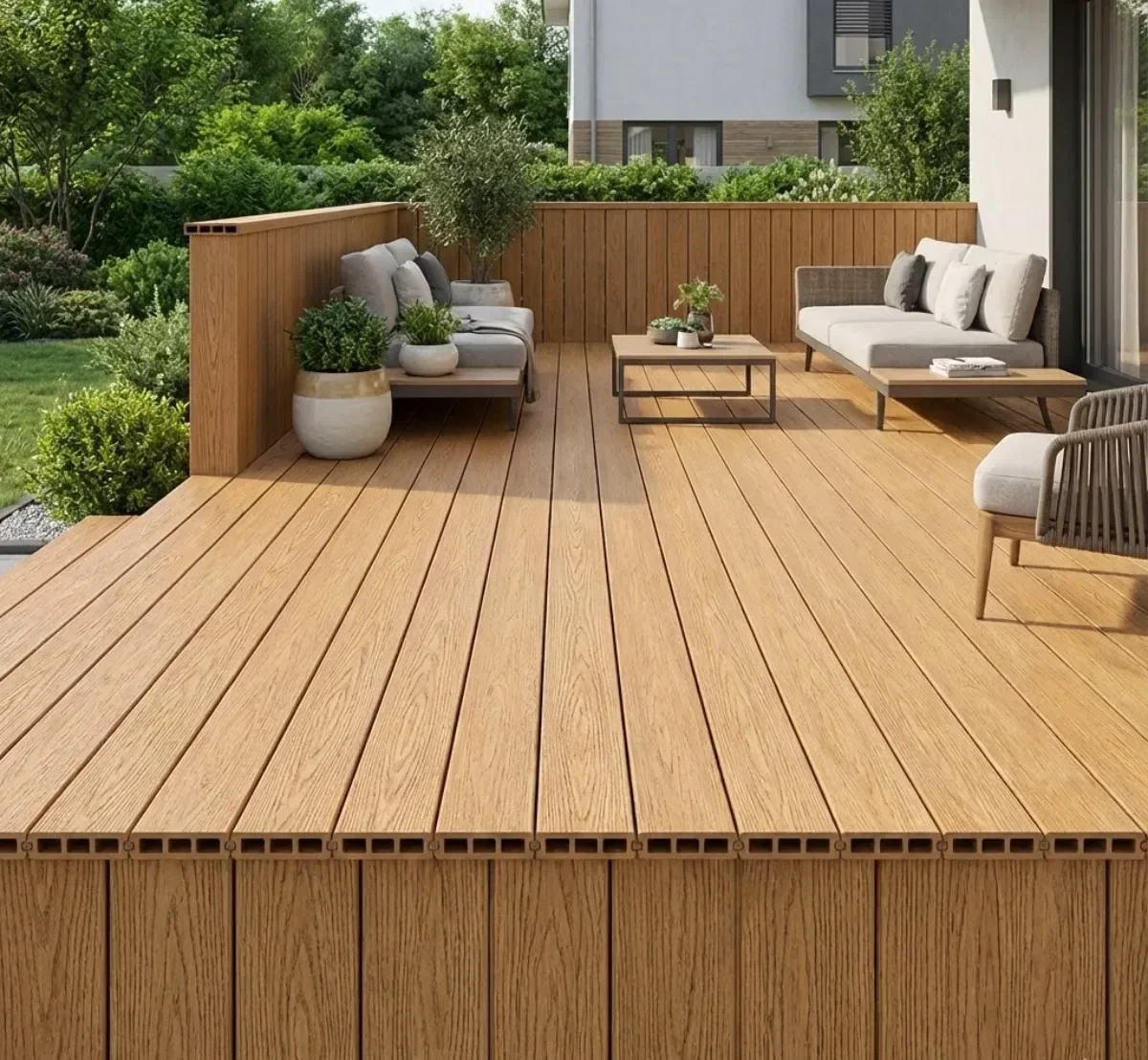 Placa pentru gard din lemn compozit wpc cu textură de lemn în nuanță bej reprezintă o alegere cu adevărat apreciată de proprietarii care caută un echilibru între estetică și funcționalitate. Cu o lățime generoasă de 150mm și o grosime de 20,6mm, această placă oferă stabilitate și rezistență chiar și în condiții dificile de utilizare. Construcția cu 4 goluri dreptunghiulare în interior nu este întâmplătoare – această structură contribuie la reducerea greutății produsului fără a compromite durabilitatea.