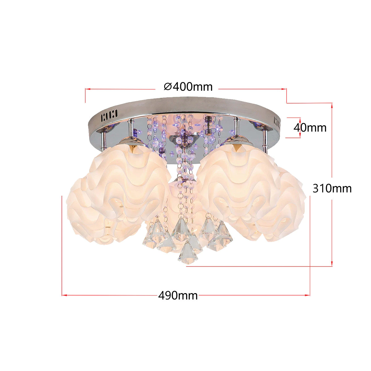 Conform standardelor CE pentru corpurile de iluminat interior, această plafonieră LED decorativă se integrează armonios în livinguri și dormitoare moderne, oferind versatilitate prin sistemul de telecomandă inclus. Structura metalică argintie conferă durabilitate și stabilitate, în timp ce abajururile ondulate din material plastic asigură difuzia uniformă a luminii și creează efecte vizuale dinamice. Dimensiunile de 40x40x38 cm fac din această plafonieră o alegere potrivită pentru încăperi cu spațiu generos, unde poate deveni elementul central de iluminat decorativ.