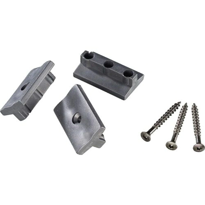 Acest sistem de fixare îmbină rezistența mecanică a oțelului inoxidabil cu designul optimizat pentru plăcile compozite cu profil de canelură laterală. Clemele au o formă specială în “L” care se ancorează simultan în caneluralaterală a plăcii deja montate și în substructură, creând un sistem autoblocant. Șuruburile A4SB (oțel inoxidabil acid-rezistent) sunt testate pentru forță de smulgere superioară în lemn tratat și profile WPC, menținând o tracțiune constantă chiar după cicluri repetate de îngheț-dezgheț.