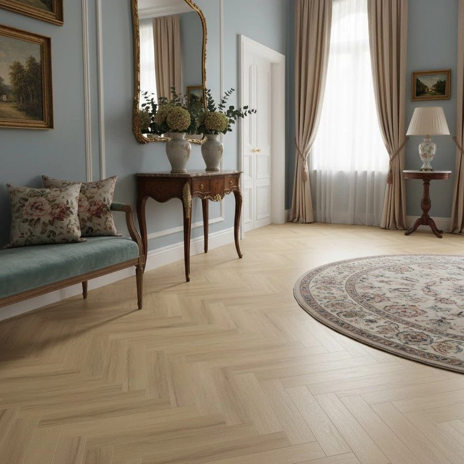 Placile de pardoseala au dimensiunile de 1511 x 229 mm si o grosime totala de 5 mm. Stratul de uzura de 0,55 mm asigura rezistenta ridicata la zgarieturi, pete si trafic intens, fiind ideal pentru spatii rezidentiale si comerciale.