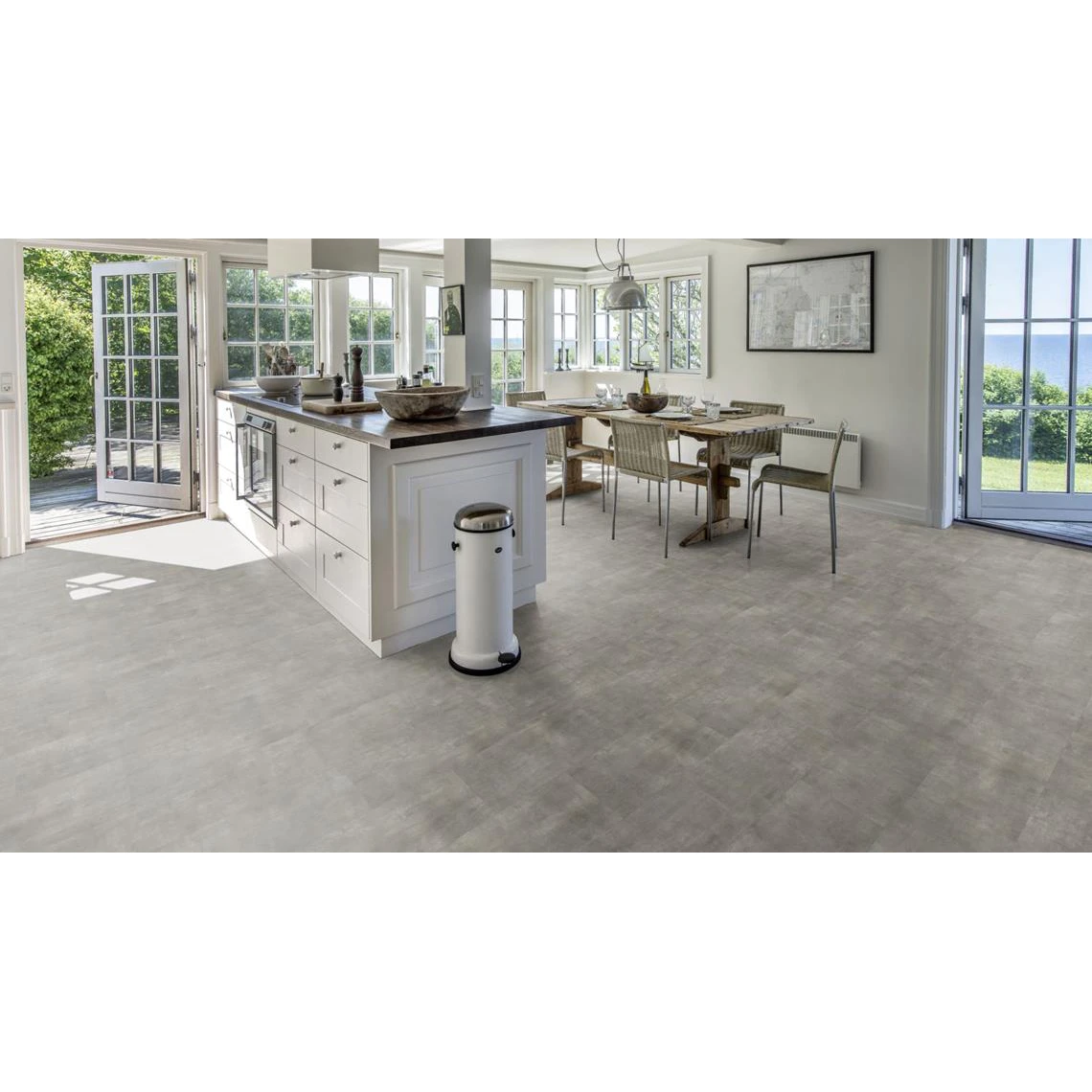 - Aspectul acestei pardoseli nu va deveni repetitiv și monoton în spații mari? Colecția Matterhorn include variații subtile de textură și nuanțare care simulează variabilitatea naturală a pietrei. Tehnologia de imprimare digitală Kahrs asigură că modelele se repetă doar la distanțe mari, creând un aspect natural chiar și pe suprafețe extinse.