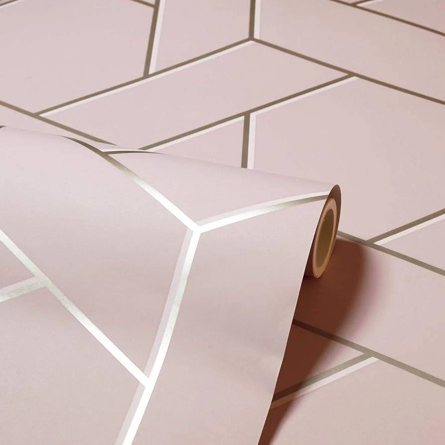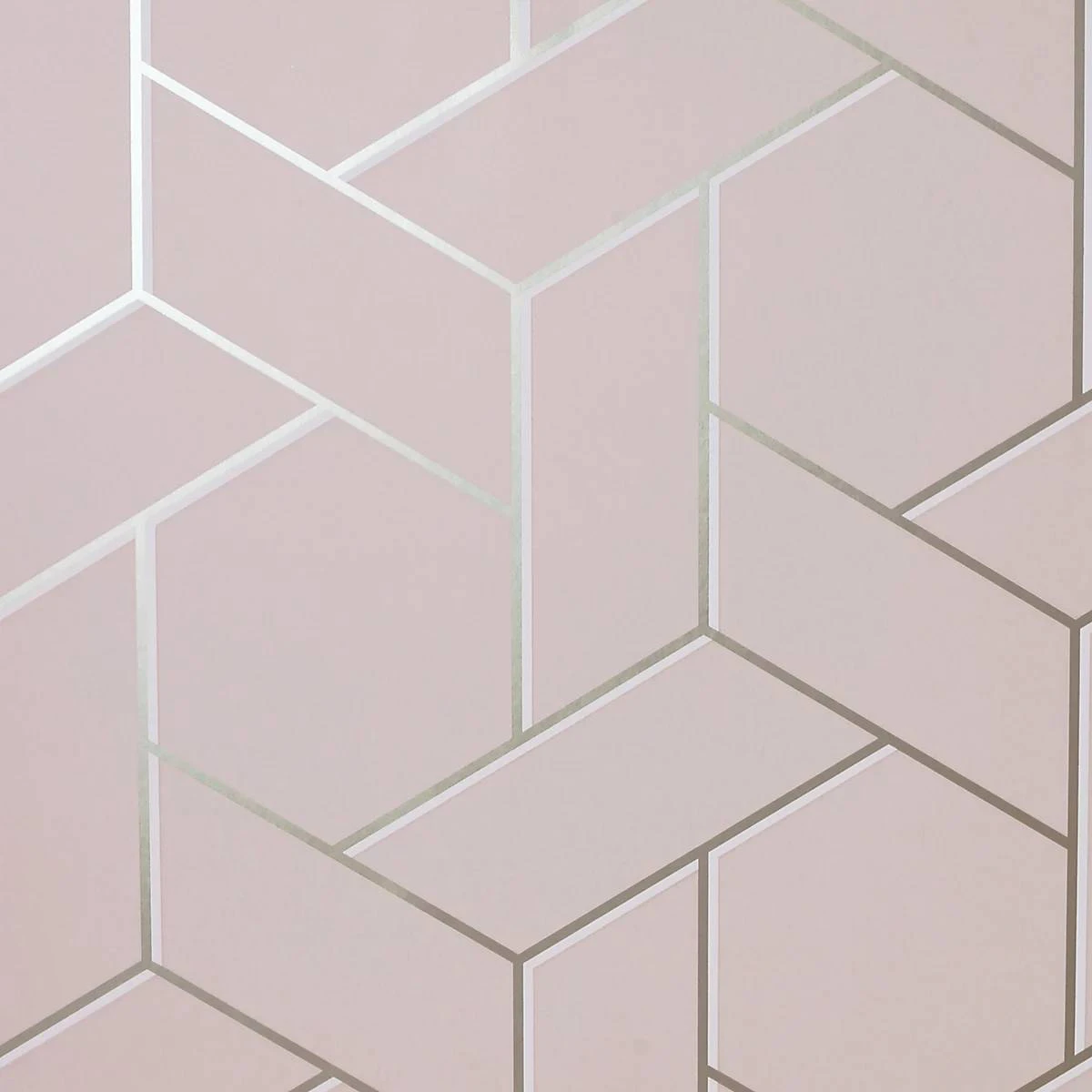 Tapet geometric Arthouse Parquet, roz, model tridimensional, acoperă 5.32 mp. Acest tapet schimbă complet atmosfera încăperii prin designul său geometric care îmbină nuanțele delicate de roz pal cu accente metalice aurii. Liniile clare și formele hexagonale creează un model tridimensional care dă profunzime și textură pereților tăi.