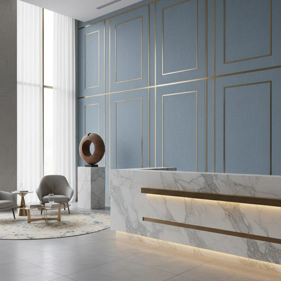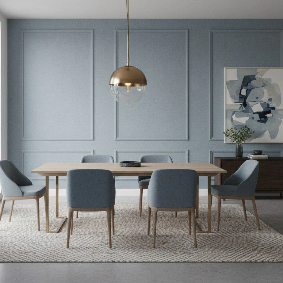 Culoarea sa specială, un amestec subtil între albastru prăfuit și note de verde acvatic, induce o stare de calm și relaxare. Textura fină, ce imită o țesătură de in, adaugă un strat de complexitate vizuală, captând lumina în moduri diferite pe parcursul zilei și conferind pereților un caracter aparte, o alternativă sofisticată la vopseaua lavabilă simplă.