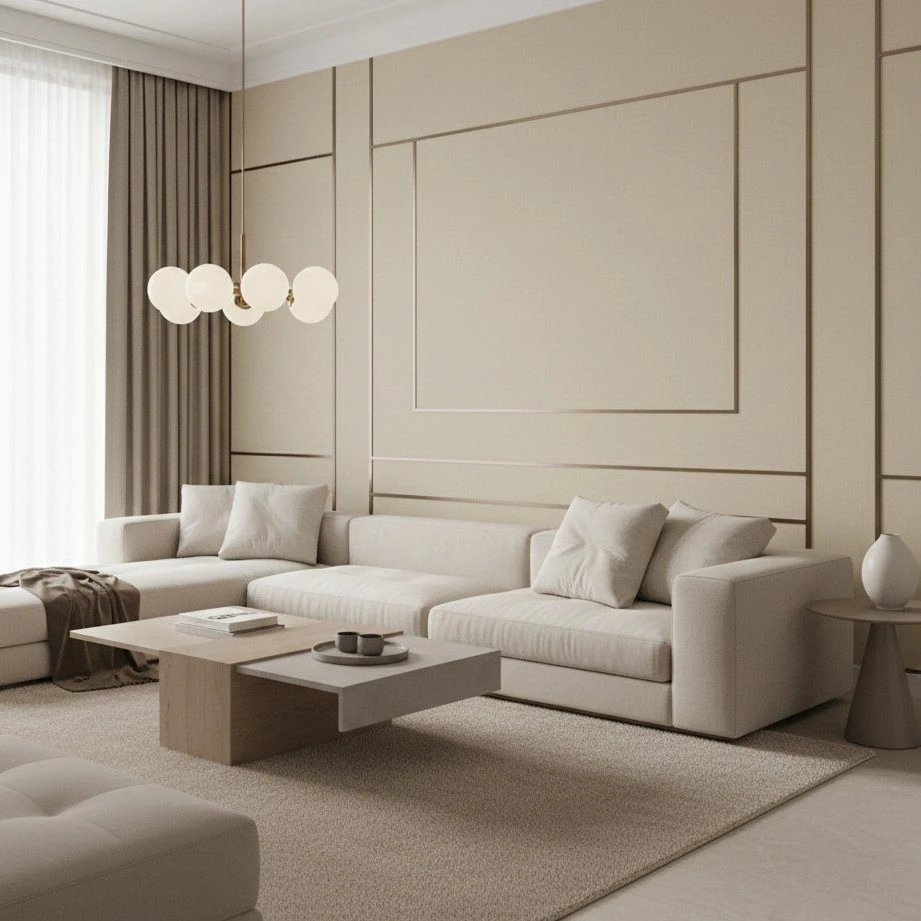 Răspuns: Nuanța de bej a fost aleasă pentru versatilitatea sa. În lumina naturală puternică, va părea mai deschisă și mai caldă, contribuind la luminozitatea camerei. În lumina artificială de seară sau în spații mai puțin luminate, capătă o tentă mai profundă și mai intimă. Textura sa mată previne reflexiile neplăcute, menținând un aspect constant elegant.