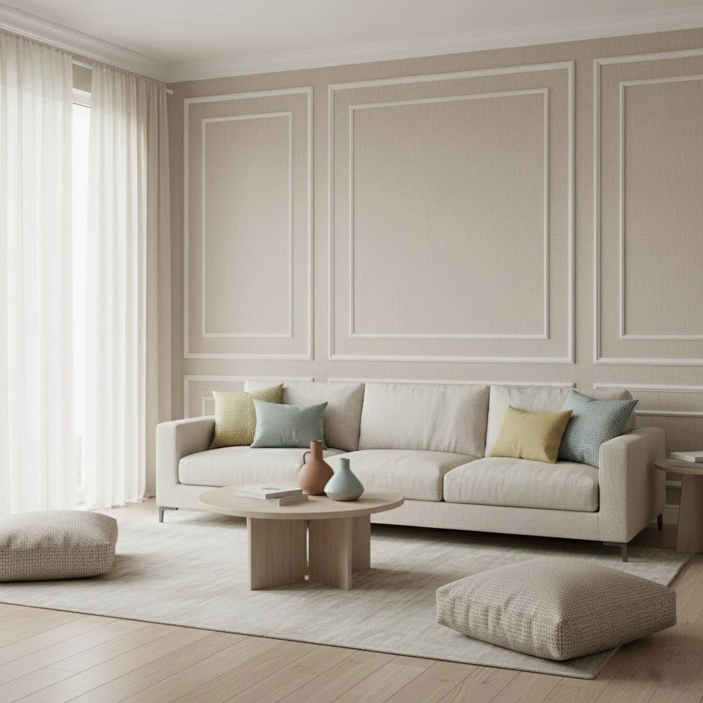 Răspuns: Nuanța de bej a tapetului Argile este, de fapt, un atu major. Această culoare neutră, caldă, acționează ca o pânză de fundal versatilă, permițându-vă să experimentați cu accente de culoare în mobilier, textile sau decorațiuni. Textura de in adaugă suficient interes vizual pentru ca peretele să nu pară plat sau monoton. Se integrează fără efort în stiluri scandinave, minimaliste, rustice sau boho-chic, oferind o bază elegantă și atemporală.