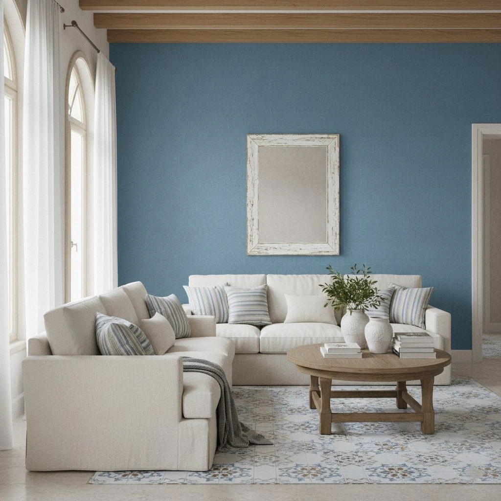 Etichete: tapet vinil lavabil, tapet aspect textil, tapet non-woven, tapet caselio, tapet albastru uni, tapet modern living, tapet pentru dormitor, tapet rezistent hol