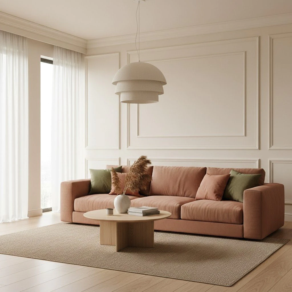 Răspuns: Coquille d’oeuf este o nuanță foarte versatilă, un alb-crem cu subtonuri calde, care nu este nici alb pur, nici bej. Această neutralitate caldă îl face extrem de ușor de asortat. Se potrivește foarte bine cu mobilier din lemn de orice esență (stejar, nuc, frasin), cu piese de mobilier albe, gri sau negre, dar și cu accente metalice de alamă, cupru sau crom, oferind un fundal calm care pune în valoare celelalte elemente de decor.