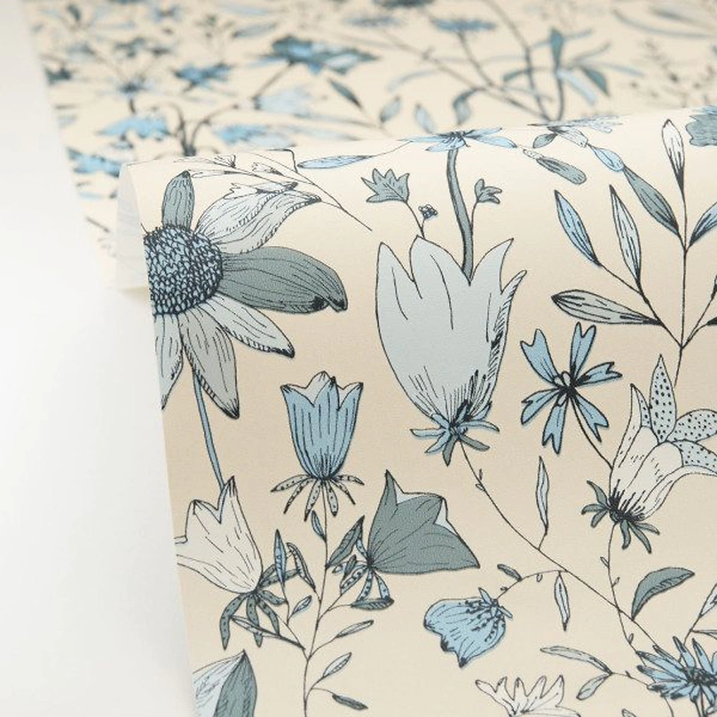 De ce să alegi tapetul vinil crem cu flori albastre delicate de la Caselio?