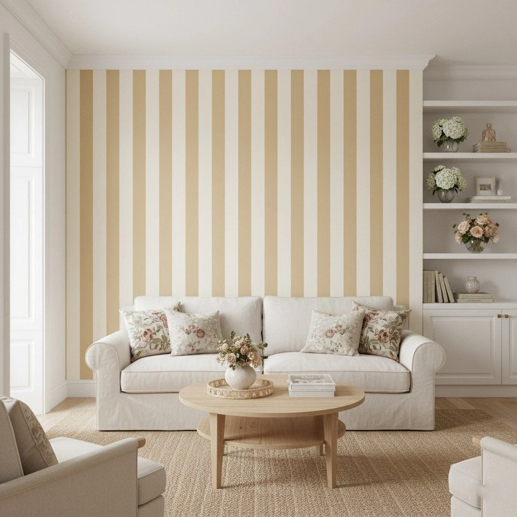 Răspuns: Dimpotrivă, designul cu dungi verticale late este o tehnică de design clasică folosită pentru a crea o iluzie de înălțime. Prin ghidarea privirii de jos în sus, acest model face ca tavanul să pară mai înalt, iar încăperea, în ansamblu, mai spațioasă și mai aerisită. - Este acest tapet potrivit pentru o familie cu copii sau animale de companie?