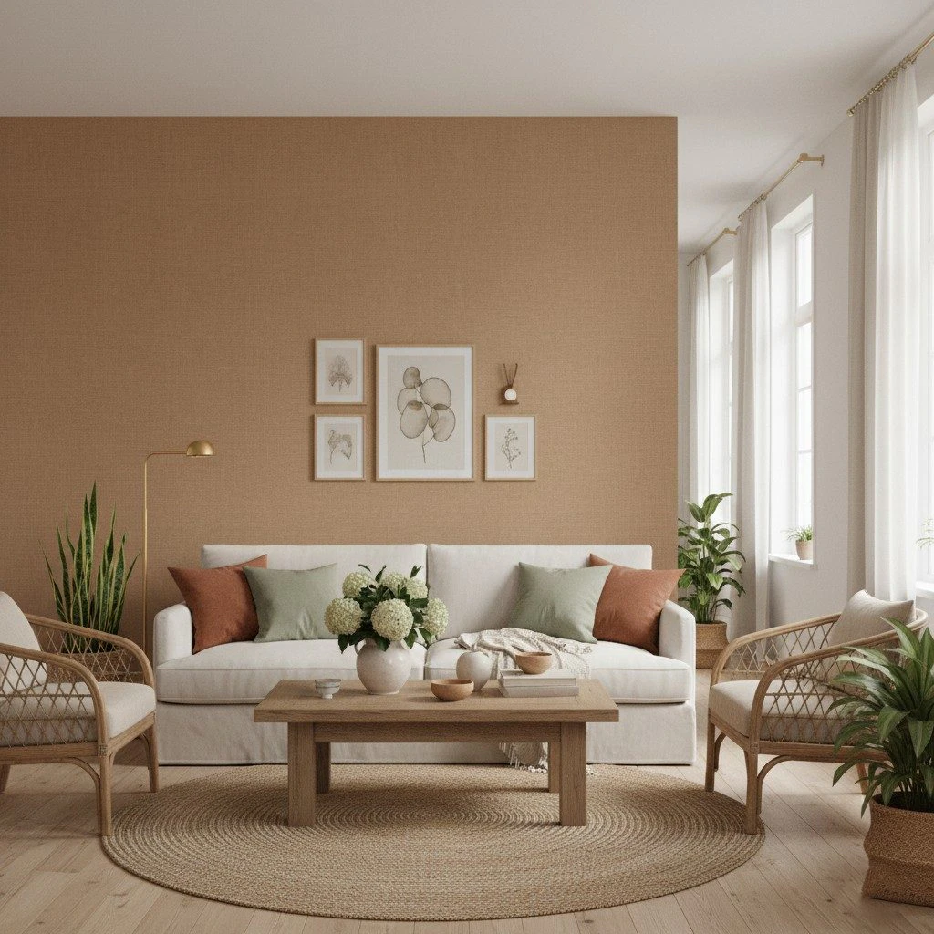 Etichete: tapet cu aspect textil, tapet vinil lavabil, tapet non-woven caselio, tapet uni mat, tapet maro pentru living, tapet texturat dormitor, finisaje interioare moderne