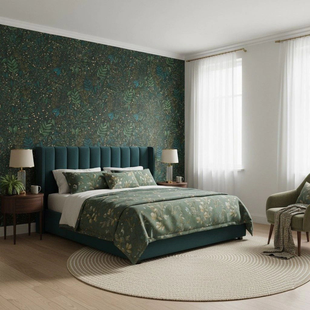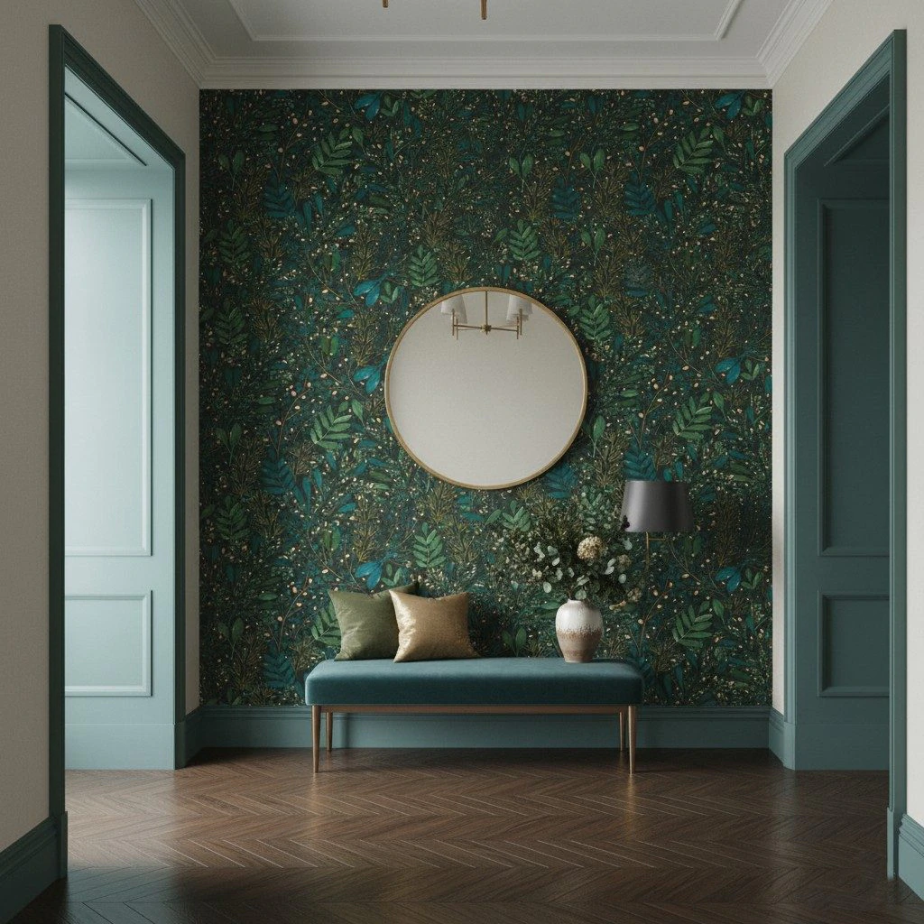 Cui nu i se potrivește acest tapet cu model botanic dens? Acest produs nu este recomandat pentru încăperi foarte mici și slab iluminate, unde modelul încărcat și fondul închis ar putea contribui la o senzație de aglomerare vizuală. De asemenea, persoanele care preferă un decor strict minimalist sau industrial ar putea considera designul său prea elaborat. Dacă aveți nevoie de o soluție pentru spații cu umiditate foarte ridicată, precum interiorul cabinelor de duș, vă sugerăm să explorați gama noastră de produse special concepute pentru contact direct cu apa.