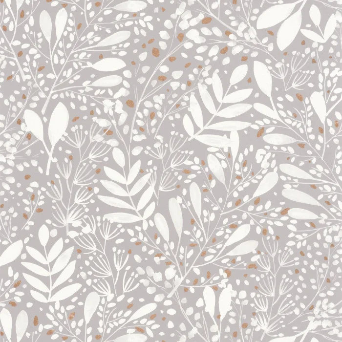 Culoare/Finisaj | Fond gri-deschis cu model botanic alb și accente cupru, finisaj neted |