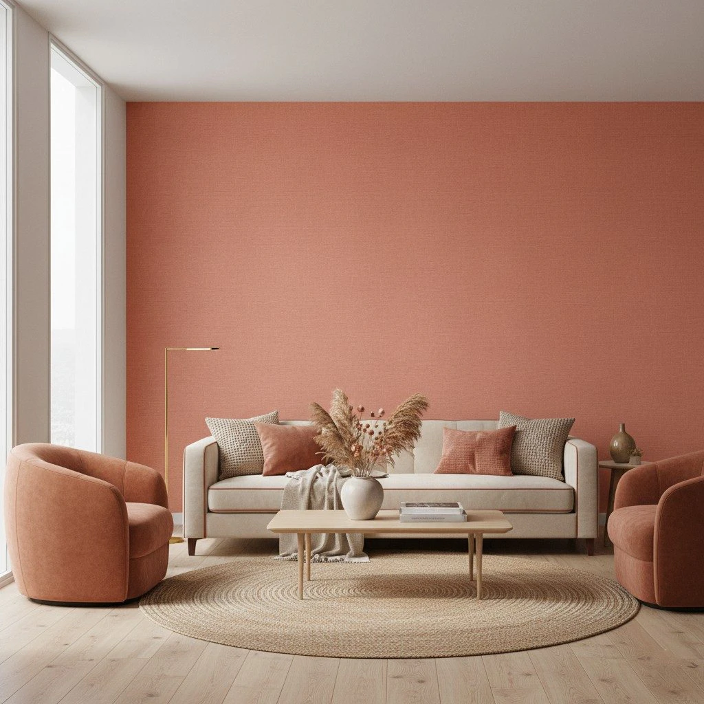 Etichete: tapet vinil lavabil, tapet non-woven caselio, tapet roșu cărămiziu, tapet cu aspect textil, tapet uni pentru living, tapet mat dormitor, tapet rezistent la frecare, decor perete hol